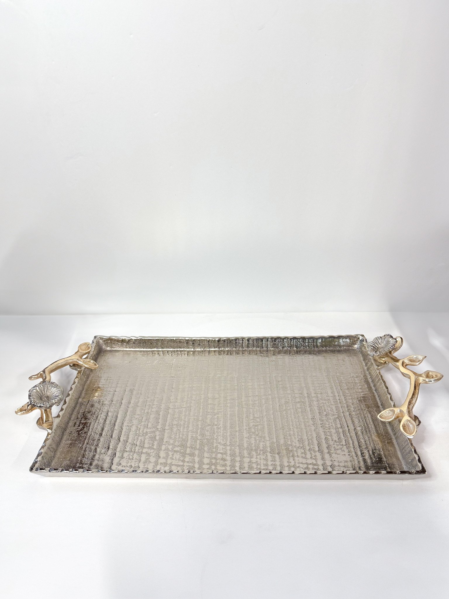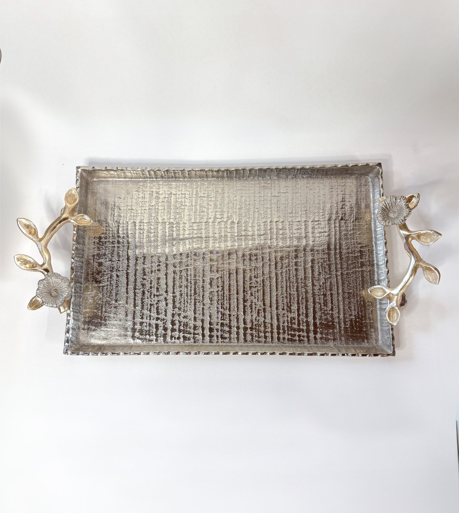 Silver Metal and Gold Serving Tray – 18.5″H x 9″W